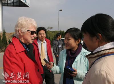 記者現(xiàn)場采訪外國來賓
