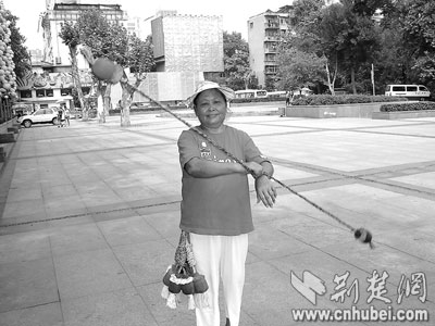 荊楚網(wǎng)消息(楚天都市報(bào))(記者雷艷 實(shí)習(xí)生丁莉娟)繩子兩端各系一個(gè)彩色布球,在空中轉(zhuǎn)起來,彩球像流星飛舞(如圖)。昨日一大早,71歲的魏玉枝來到漢口中山公園,玩起流星球。