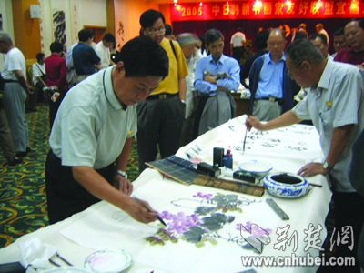 昨日,來自中、日、新、韓四國共26名書畫大家在游覽三峽后,紛紛揮毫潑墨,并與宜昌本土書畫家進行了交流。據了解,此次四國書畫家友好聯盟大型筆會活動,是由宜昌市政協(xié)、宜昌點軍區(qū)政府和宜昌環(huán)中房地產開發(fā)有限公司、宜昌環(huán)中旅游開發(fā)有限公司共同舉辦的。荊楚網楚天都市報記者梅曉蕓攝