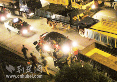 4月30日晚8時許,知情人告訴記者,20多個扒賊又現(xiàn)身了。晚9時許,記者趕至武泰閘,只見這一帶的車輛綿延一兩公里,其中多數(shù)為貨車,車速非常緩慢。