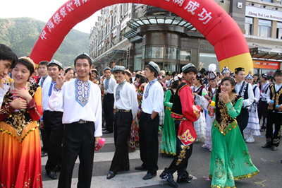 在遍布大連城100多個(gè)廣場(chǎng)上,形式多樣的民間文體活動(dòng),與狂歡節(jié)巡游隊(duì)伍遙相呼應(yīng)。