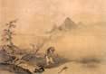 雪舟被稱為水墨畫之祖。年輕時(shí)向當(dāng)時(shí)日本著名的日本漢畫家如拙和周文學(xué)習(xí)過宋元的水墨技法。1469年雪舟從中國(guó)留學(xué)歸國(guó),創(chuàng)出一種明朗清晰的日本民族的水墨畫風(fēng)格,成為日本水墨畫的真正開創(chuàng)者和一代宗師,把日本繪畫推入真正日本人自己駕馭的藝術(shù)軌道中。雪舟不屬于國(guó)都中繪畫圈內(nèi)的人物,他住在荒僻的 鄉(xiāng)村,和各行各業(yè)的人交往,全心致力于繪畫出真正反映日本精神的水墨畫。他的代表作有《四季山水圖》《秋冬山水圖》《天橋立圖》等。