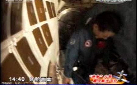 航天員準備穿越軌道艙(來源于CCTV)航天員進入軌道艙(來源于CCTV)航天員正穿越軌道艙(來源于CCTV) 航天員穿越軌道艙(來源于CCTV)
