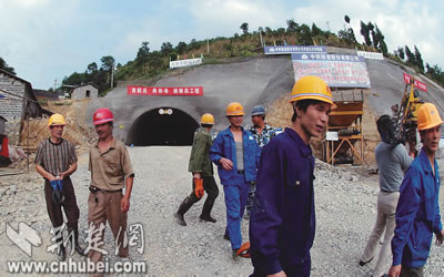 滬蓉西高速公路開工了,宜萬鐵路施工線路拉開了,恩施機場的改擴建工程也啟動了,被群山環(huán)抱的恩施州,迎來了史無前例的交通大建設,總投資達367億元。5年后,該州高速公路和鐵路將實現(xiàn)西進東出,直達重慶、武漢和上海等地。圖為恩施市大水井隧道施工現(xiàn)場一角。荊楚網(wǎng)湖北日報記者楊平攝