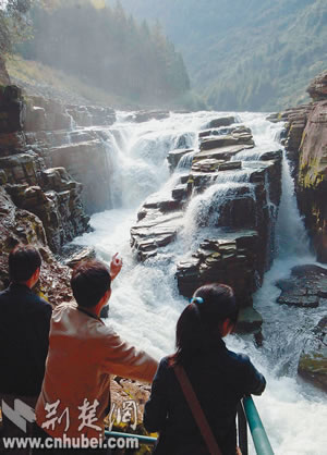 難怪恩施州委書記湯濤多次感嘆:“養(yǎng)在深閨人未識,無人跡處有奇觀”。他說,“‘兩路’通了以后,游客就可以從武漢坐火車或走高速到恩施,到清江闖灘,游沐撫大峽谷,看梭布埡石林,漂神農溪,再順江而下游三峽大壩,形成一個旅游圈!蔽磥矶魇┞糜尉已在他心里悄然勾畫。