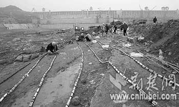 1997年11月大江截流后,三峽工程二期上、下游橫向圍堰在左岸動(dòng)工,此圍堰將長江主河床截?cái),與一期形成的混凝土縱向圍堰共同形成二期基坑。在基坑內(nèi)建起了泄洪壩段、左岸廠房壩段及電站廠房等主體建筑物。2002年5月和7月,先后拆除了二期上、下土石橫向圍堰。