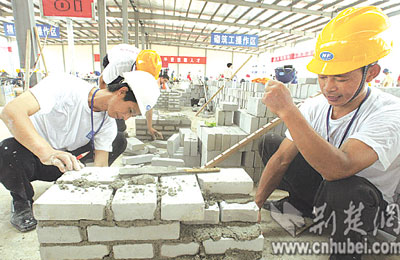 昨日,前往湖北城市建設(shè)職業(yè)技術(shù)學(xué)院藏龍島校區(qū)參賽的,除了精細木工外,還有砌筑工、鋼筋工和鑲貼工等工種,共114名選手。他們是從全省117萬建筑工人中層層選拔出來的。