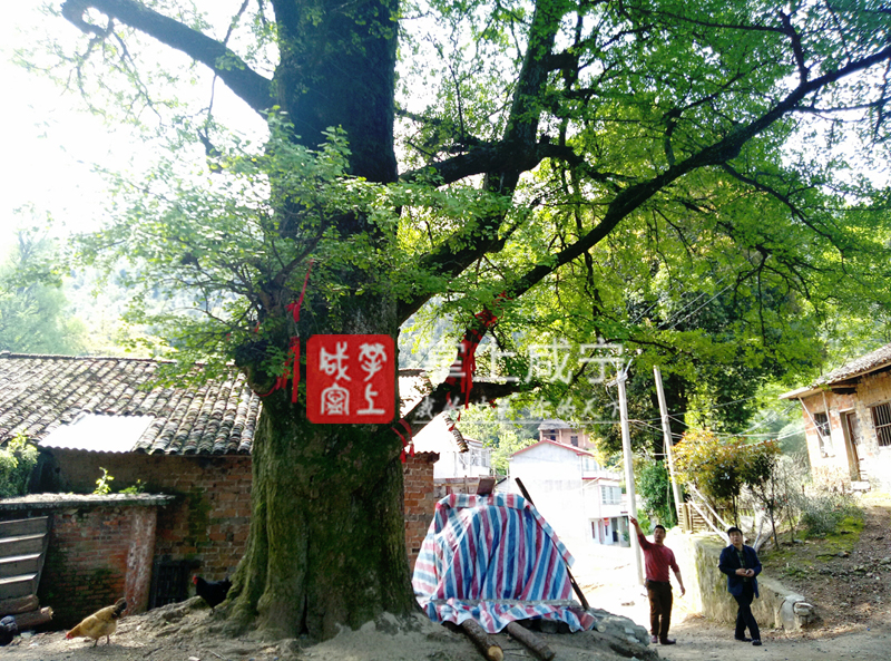 記者看到,在村內(nèi)的一處古民居旁,三棵銀杏樹高達(dá)近70米,枝葉繁茂,樹干挺立,要想圍住粗大的枝干必須要5個以上的成年人才能做到。在銀杏樹四周,還分布著拐棗、垂柳等多棵百年古樹。