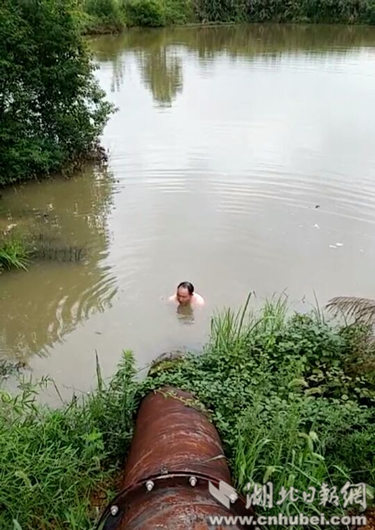 湖北日報網(wǎng)訊(全媒體記者張文龍、通訊員黃柱、童金?。?日晚,赤壁市新店鎮(zhèn)雨亭嶺村的皤河河段發(fā)生感人一幕——一處排洪管道堵塞,該村黨支部書記劉繼生不顧大雨,跳進水中,潛水疏通管道?!拔沂堑潭呜熑稳耍鸵獩_在第一線?!彼f。