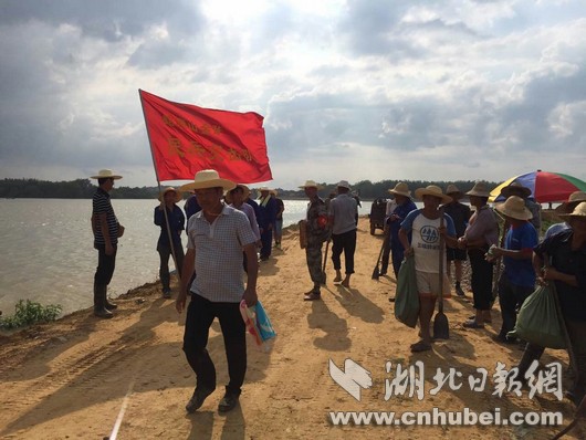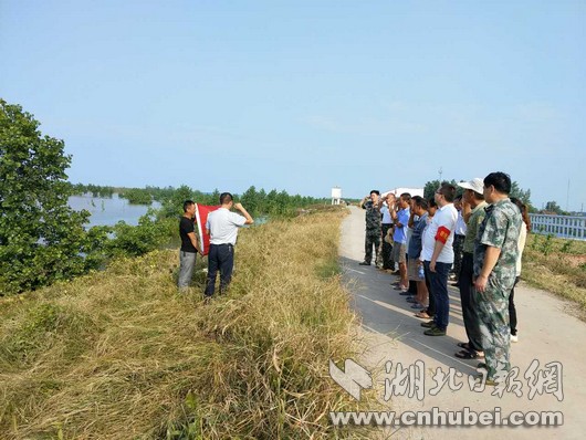 湖北日報網(wǎng)訊(全媒體記者張愛虎、通訊員敖瓊、龍鈺)“我志愿加入中國共產黨……”3日下午,嘉魚縣簰洲灣鎮(zhèn)簰洲灣大堤上,40多名黨員頭頂烈日,面對長江,面向黨旗,重溫入黨誓詞,學習省黨代會精神,鞏固防汛知識,落實防汛工作。