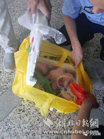 7日上午,崇陽縣天城鎮(zhèn)居民李師傅在該鎮(zhèn)下津大道路邊撿到一個(gè)白色包裹,送到崇陽縣公安局經(jīng)濟(jì)開發(fā)區(qū)派出所。為了找到包裹的主人,所長童鵬飛打開了包裹尋找線索,里面有豬肉、干筍等物品,還有一封信。