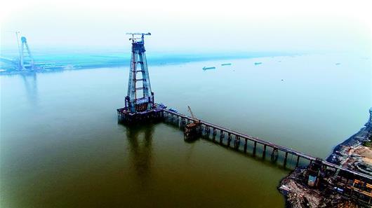 湖北日?qǐng)?bào)訊 12月4日,正在建設(shè)中的嘉魚(yú)長(zhǎng)江公路大橋南北主塔分別達(dá)到164米、158米,相當(dāng)于50多層樓高。大橋建設(shè)者開(kāi)展勞動(dòng)競(jìng)賽,力爭(zhēng)在2018年春節(jié)前完成主塔封頂。咸寧市擁有128公里長(zhǎng)江岸線卻沒(méi)有一座長(zhǎng)江大橋,嘉魚(yú)長(zhǎng)江公路大橋2019年底建成通車(chē)后,將終結(jié)咸寧無(wú)長(zhǎng)江大橋的歷史。 (湖北日?qǐng)?bào)全媒記者 陳勇 通訊員 周漓 攝)
