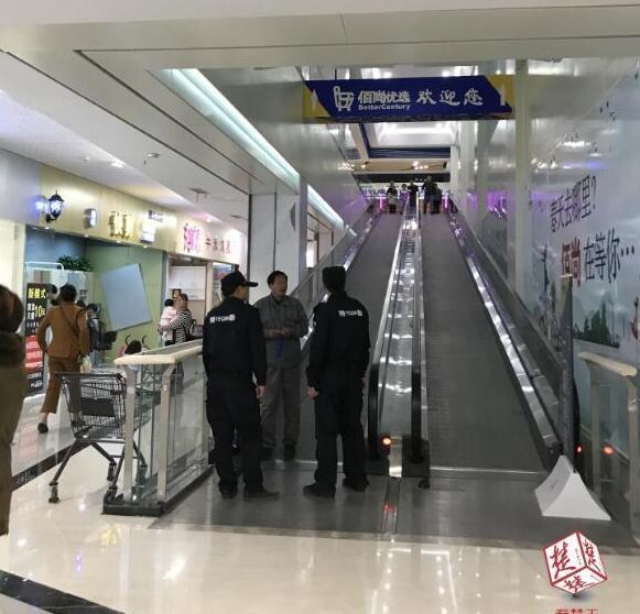 晚8時許,楚天都市報記者來到該商場,該廣場中的保安以設(shè)備檢修為由要求各商場關(guān)門,并拒絕顧客入內(nèi)。記者看到,該商場的手扶電梯與墻體之間約有20厘米的縫隙,沒有密封也沒有網(wǎng)格護(hù)攔。記者離開時,看到民警趕來調(diào)查。