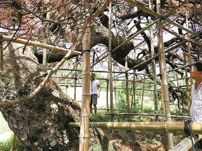 眼看這棵長了400多年的古松奄奄一息,當(dāng)?shù)卮迕裥耐床灰?。村民們向楚天都市?bào)記者表示,只要有人能將這棵樹救活,全體村民愿捐款為他打賞。