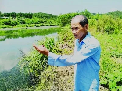 程正華老人站在大市村的大市河邊,指著一段長著茂密草叢的河堤激動地說: