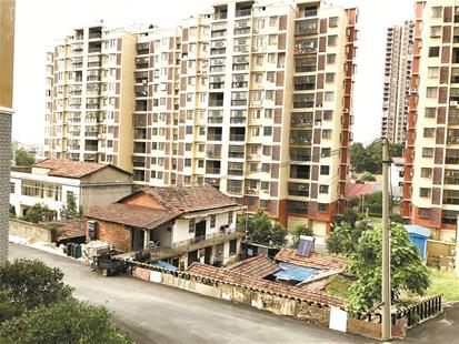 圖為養(yǎng)豬場被居民樓包圍
