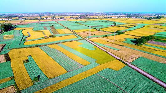 10月11日,嘉魚縣潘家灣鎮(zhèn),大白菜、包菜、中稻、晚稻在田野上鋪開調(diào)色板,形成初秋時節(jié)長江南岸獨特的農(nóng)業(yè)景觀。農(nóng)業(yè)大縣嘉魚,蔬菜種植面積58萬多畝,水稻28萬多畝,正在創(chuàng)建全國現(xiàn)代農(nóng)業(yè)示范區(qū)。