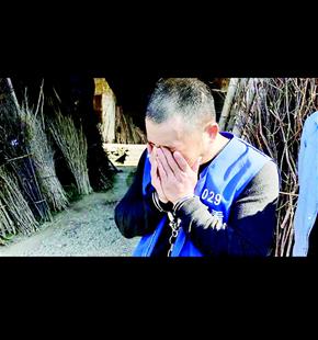 圖為:17年后,余明梁指認殺害未婚妻的老屋時掩面而泣