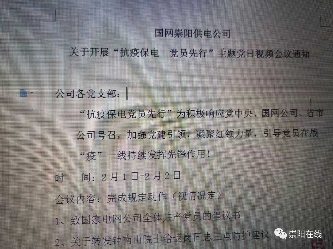 (桂薪雄) 2月2日上午9時(shí),龔云兵在學(xué)習(xí)強(qiáng)國(guó)app上,主持開(kāi)展了國(guó)網(wǎng)咸寧崇陽(yáng)縣供電公司金塘黨支部第一次視頻黨員大會(huì)。