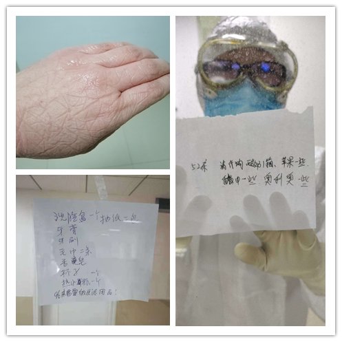 他們負(fù)責(zé)隔離患者的日常治療和護(hù)理,每天6個小時一次的輪班,穿上隔離服,她們就進(jìn)入緊張而有序的工作狀態(tài)。因為穿、脫隔離服有著嚴(yán)格的操作流程和要求,所以不能夠喝水,穿著隔離服不方便上廁所。每天她們要做多種檢測和病情的記錄,身心處于高度戒備狀態(tài)的同時,還必須時刻密切關(guān)注病患的心理變化,安撫病患的情緒。