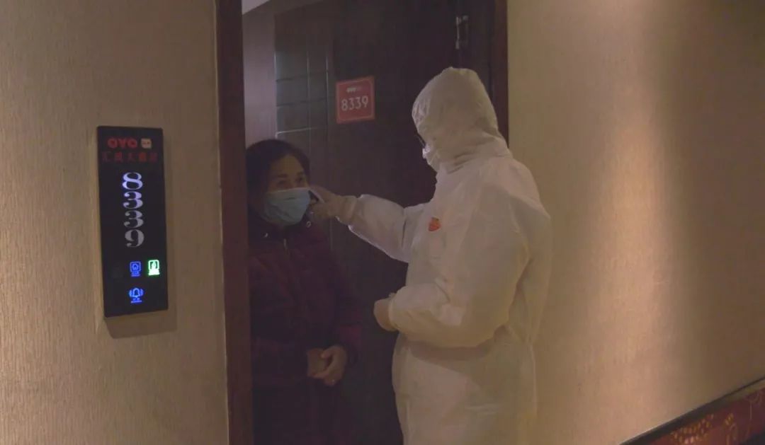 所有的物資由縣防控指揮部統(tǒng)一調(diào)配,每天上午和下午疾控中心的工作人員,對(duì)房間、走廊進(jìn)行消毒,保證衛(wèi)生。醫(yī)務(wù)人員每天上午、下午、晚上三次給病人測(cè)量體溫,觀察身體反應(yīng),生活上一日三餐、開水都送到門上,保障他們生活比較舒適,能安心進(jìn)行觀察,保證他們身體健康。