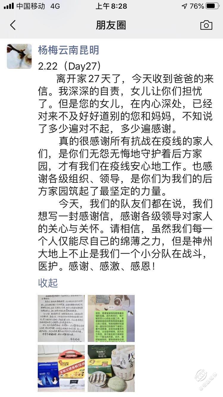 今天,我們的隊(duì)友們都在說(shuō),我們想寫一封感謝信,感謝各級(jí)領(lǐng)導(dǎo)對(duì)家人的關(guān)心與關(guān)懷。請(qǐng)相信,雖然我們每一個(gè)人僅能盡自己的綿薄之力,但是神州大地上不止是我們一個(gè)醫(yī)護(hù)小分隊(duì)在戰(zhàn)斗。感謝、感激、感恩!