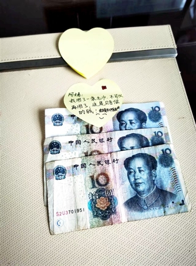 來(lái)自曲靖市中醫(yī)醫(yī)院的一位隊(duì)員用了一條毛巾,留下30元錢(qián),并用便利貼寫(xiě)著:“阿姨,我用了一條毛巾,不可以再用了,這是賠償?shù)腻X(qián)!”