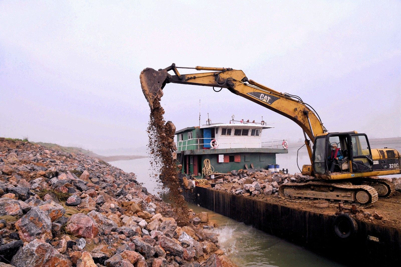 陸水河四清垸大堤全長(zhǎng)450米,多年來的洪水侵襲致使河床下沉,堤岸崩裂。對(duì)此,赤壁市制訂了堤岸拋石護(hù)腳整治規(guī)劃。隨著疫情逐漸好轉(zhuǎn),赤壁市于3月18日啟動(dòng)工程維修計(jì)劃,投入大量人力物力。隨著挖掘機(jī)鐵臂的揮舞,一塊塊巨石墜落在河岸,為大堤的防洪能力再加一道保險(xiǎn)。