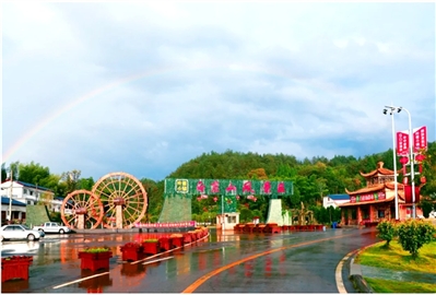 瑤祖故里大觀園內(nèi),古瑤壘石門樓,蘊天地靈氣,攬關(guān)山萬重。天然青石壘砌的梯形門樓,古色古香,錯落有致。