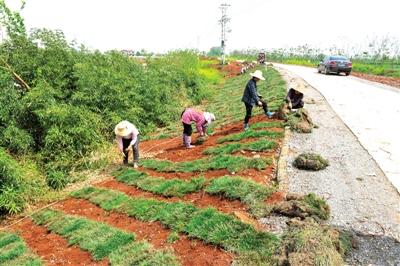 4月1日,渡普鎮(zhèn)斧頭湖加固工程現(xiàn)場(chǎng),工人們正在為加固的斧頭湖大堤植草皮。項(xiàng)目負(fù)責(zé)人張慶介紹,斧頭湖大堤植草皮標(biāo)志著歷經(jīng)2年的斧頭湖加固工程已進(jìn)入尾聲。
