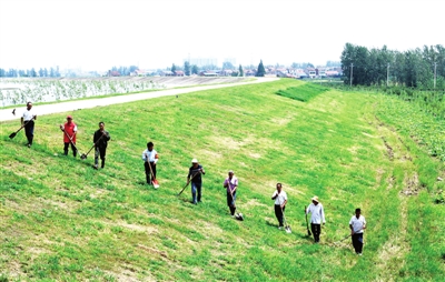 21日,嘉魚縣長江四邑公堤凈堡段,當(dāng)?shù)馗刹咳罕娫谘驳滩殡U。
