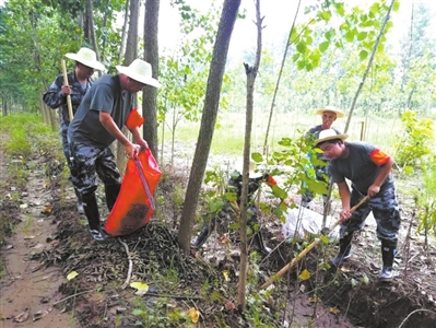 “這個插上紅旗做標(biāo)志的地方是地質(zhì)鉆口,雖已封口,但每次巡堤一定要來檢查,看周圍是否有異?!边@是朱天志給新上堤的“90后”防汛突擊隊員唐文講巡堤技巧和相關(guān)要領(lǐng)。