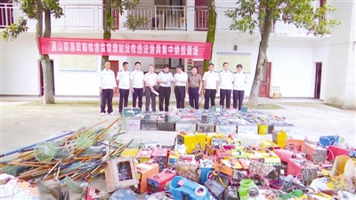 合力“嚴管”形成高壓。7月中旬以來,組織執(zhí)法行動211次,出動執(zhí)法船艇和車輛230臺次,參與執(zhí)法人員1031人次,現(xiàn)場查獲并銷毀各類非法漁具632套、違法電捕設備21臺(套),查扣非法捕撈漁船2 艘,行政處罰54人,行政罰款1.4萬元,批評教育300余人,刑事立案1起,形成了有效震懾。