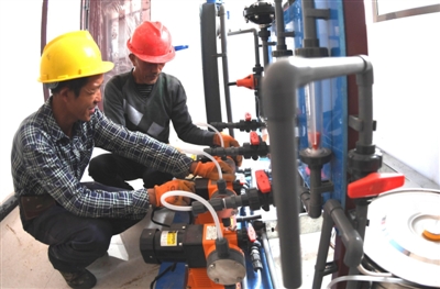20日,通山縣黃沙鋪鎮(zhèn)萬(wàn)家水廠,技術(shù)員在對(duì)設(shè)備進(jìn)行調(diào)試。