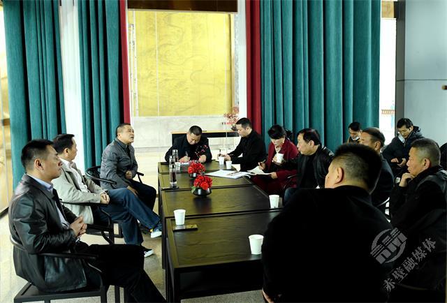 在羊樓洞新街,萬(wàn)里茶道文化博覽中心旁廳里,一場(chǎng)推進(jìn)萬(wàn)國(guó)茶市“百家茶企入茶市”裝修工程的專題會(huì)議正在召開(kāi)。