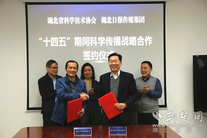 荊楚網(wǎng)客戶端—荊楚網(wǎng)消息(記者謝頤、陳雅俊 通訊員安明山)普及科學(xué)知識,倡導(dǎo)科學(xué)方法,傳播科學(xué)思想,弘揚科學(xué)精神。1月27日,湖北省科學(xué)技術(shù)協(xié)會與湖北日報傳媒集團(tuán)簽訂“十四五”期間科學(xué)傳播戰(zhàn)略合作協(xié)議。協(xié)議明確:雙方聚焦主責(zé)主業(yè),充分發(fā)揮各自優(yōu)勢,推進(jìn)“十四五”期間全面深入合作,增強(qiáng)科學(xué)傳播的影響力和覆蓋面,為實現(xiàn)湖北省2025年公民科學(xué)素質(zhì)建設(shè)目標(biāo)提供有力支撐。