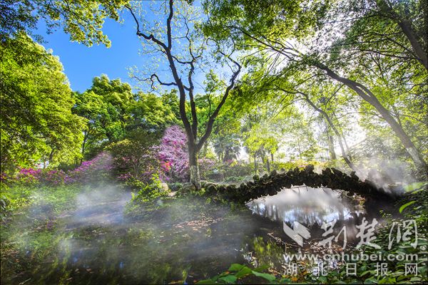 荊楚網(wǎng)(湖北日報網(wǎng))訊(通訊員陳長麗)最美人間四月天,“花中西施”杜鵑接力登場成為春花主力。在武漢植物園,5萬株杜鵑恣意開放,園內(nèi)各處杜鵑簇?fù)碇︻^,織錦堆繡,漫山紅遍,美不勝收。園區(qū)重新修繕提升了杜鵑園霧噴景觀,云霧繚繞中,萬千杜鵑燦若云霞若隱若現(xiàn),宛若人間仙境。
