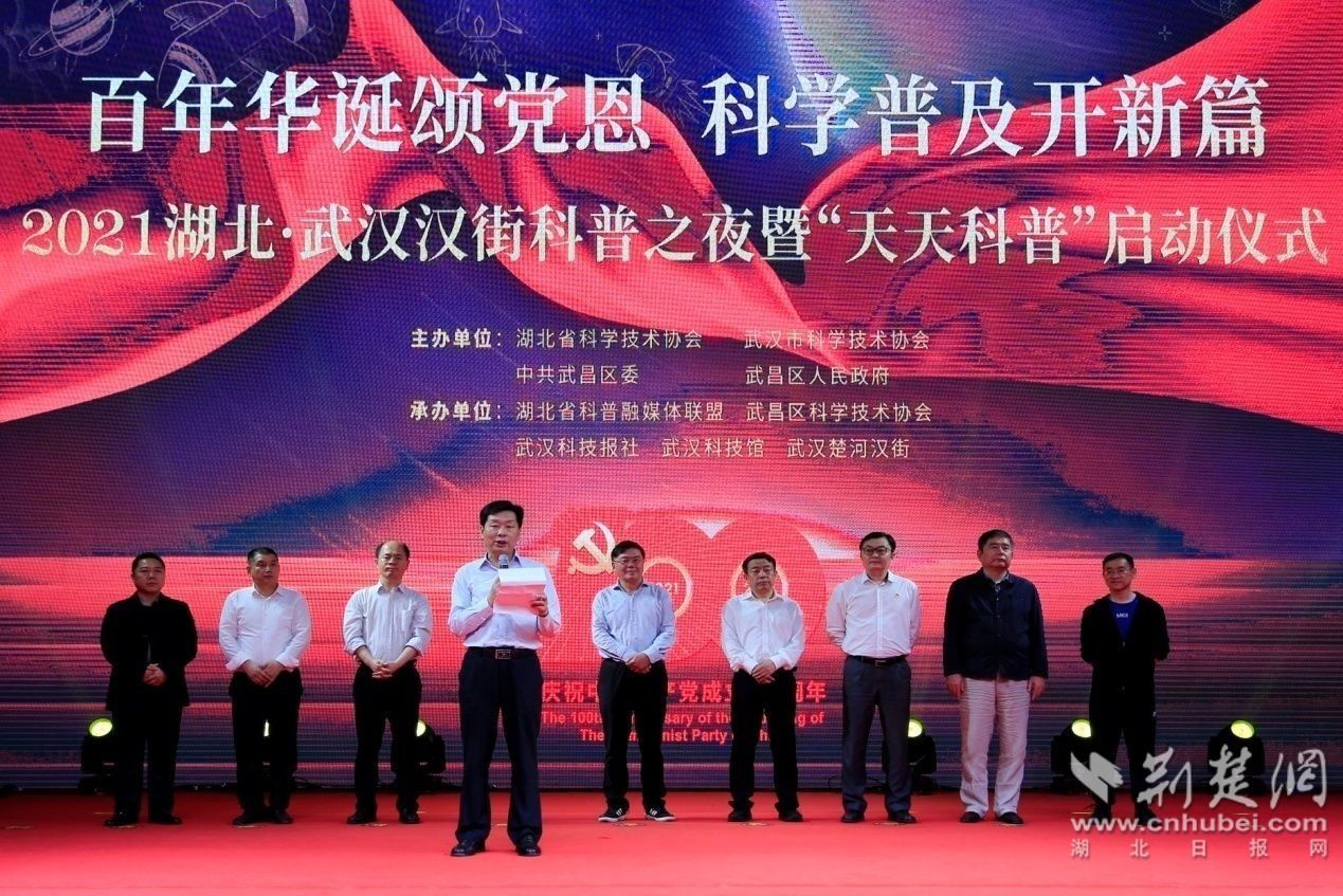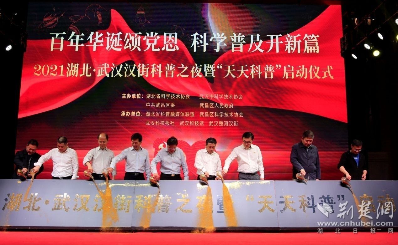 隨后,馬忠星宣布2021湖北?武漢漢街科普之夜暨“天天科普”啟動(dòng),并邀請(qǐng)參加活動(dòng)的嘉賓共同點(diǎn)亮鎏金沙臺(tái)。