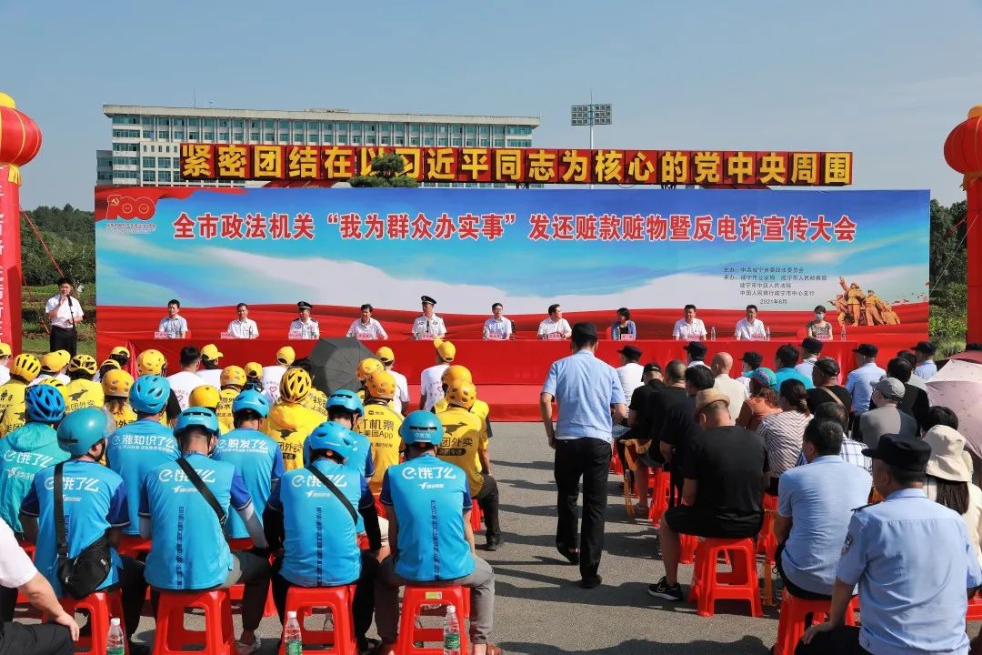 借此次退贓大會契機(jī),咸寧市公安局組織開展全民反詐、我為群眾辦實(shí)事“團(tuán)圓”活動、防爆維穩(wěn)武器裝備演示和禁毒成果展示等一系列宣傳活動。