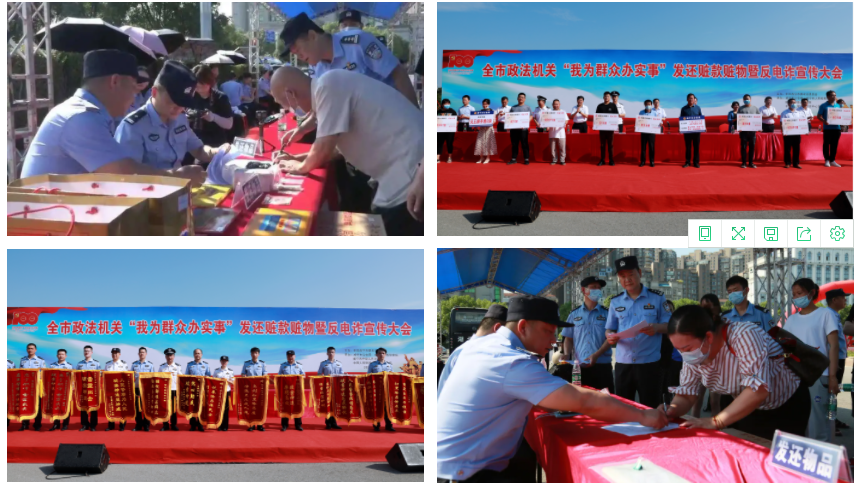 通過此次退贓大會,進(jìn)一步向全市人民展示了咸寧公安扎實(shí)開展“我為群眾辦實(shí)事”活動成效,以及嚴(yán)打嚴(yán)防各類犯罪,致力“打防管控宣”,堅(jiān)決斬?cái)嗌煜蛉罕婂X袋子的黑手。