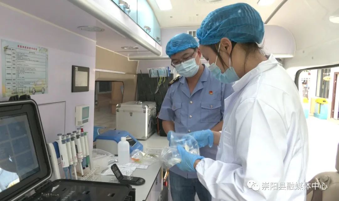 在崇陽縣第二幼兒園,檢測(cè)人員正在為采樣做準(zhǔn)備,在將專業(yè)儀器、設(shè)備調(diào)試好后,對(duì)校園食堂里已經(jīng)過消毒的餐具進(jìn)行拭子采樣,隨后將采樣的拭子放入檢測(cè)儀器中。
