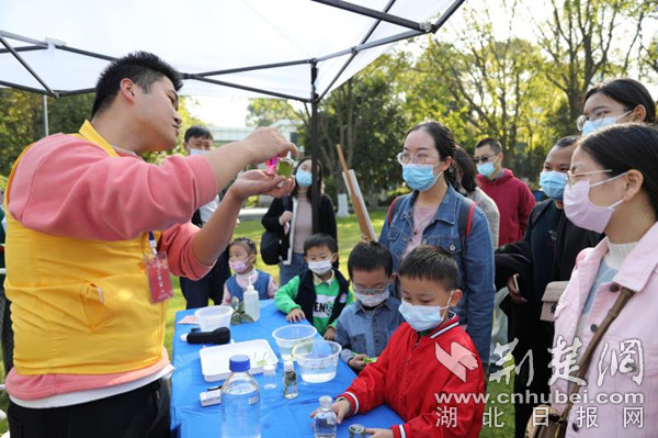 圓溜溜的東紅獼猴桃、“復活”的千年古蓮子、珍稀瀕危植物書簽生動地呈現(xiàn)出植物園的科研成果,亮閃閃的巖礦化石、栩栩如生的蝴蝶標本、精巧的建筑模型令人目不暇接,智能垃圾桶、會投籃的機器人、炫酷的無人機讓人感受到智能科技的魅力……植物園的大草坪上,武漢本地的17家科教機構(gòu),從行業(yè)角度出發(fā)展現(xiàn)科技水平,為公眾奉上了一場科學盛宴。