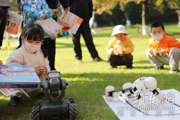 “機器人是在做瑜伽嗎?它們還會跳雙人舞!”隨音樂舞蹈的機器人令小朋友們頗感新奇。華中農(nóng)業(yè)大學博物館與中國地質(zhì)大學逸夫博物館展出的動物標本、恐龍化石與礦石則吸引了眾多游人的注意力。人們駐足在展位前,領(lǐng)略科學的美麗。