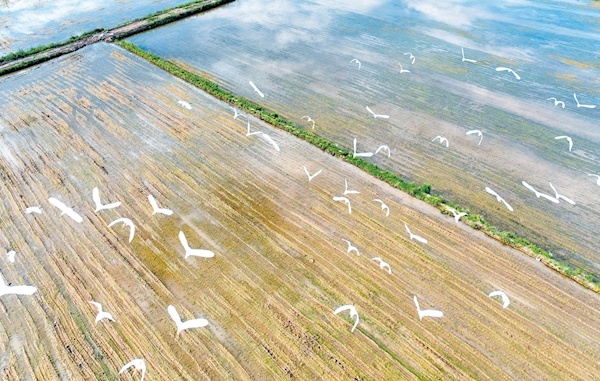 日前,記者在房縣軍店鎮(zhèn)上茅坪村看到,一群白鷺在千畝生態(tài)稻田上空翩翩飛舞。近年來,該縣牢固樹立“綠水青山就是金山銀山”發(fā)展理念,大力推廣綠色高質(zhì)高效水稻生產(chǎn)模式,減少農(nóng)藥和化肥使用量,生態(tài)環(huán)境不斷改善,吸引多種鳥類棲息繁殖。
