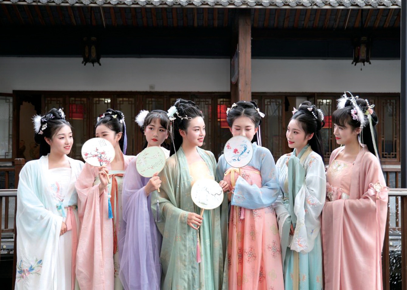 “仲夏苦夜短,開軒納微涼。姐妹們,如此炎熱,我們?yōu)槭裁匆竭@里來呀?”婉轉(zhuǎn)的聲音從遠(yuǎn)處傳來,回首望去,七位顧盼生輝的美人站在橋上相談甚歡。晚報“七仙女”帶大家打卡朝鳳莊園,直播正式開始,小橋、烏篷船、露臺,每一處都有仙女們飄然的身影,她們或坐或站,伴隨著水塘里的霧氣,真像是從天上下凡,正在吃飯的食客都放下了筷子欣賞。