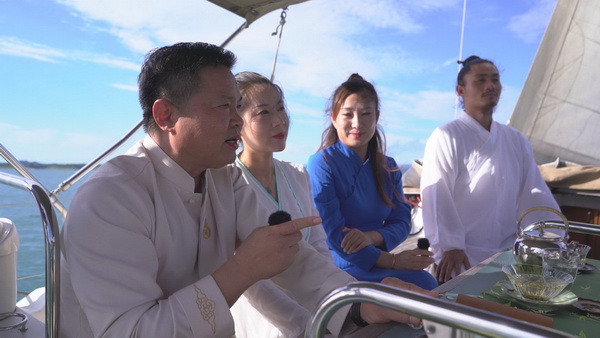 “采仙山之靈氣,納碧水之潤(rùn)澤”。在碧波蕩漾的太極湖上,武當(dāng)文化學(xué)者與愛(ài)好者圍繞煙波浩淼的丹江口水庫(kù)、舉世矚目的南水北調(diào)中線工程、72峰朝大頂?shù)莫?dú)特奇觀、沉睡于漢水之下的均州古城、國(guó)學(xué)經(jīng)典《道德經(jīng)》,看老子像、眺天柱峰、尋水下城,品茶論道、談古論今,呈現(xiàn)出“泛舟江湖”的唯美意境。