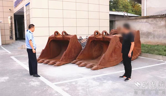 8月17日,辦案民警奔赴四川達(dá)州將犯罪嫌疑人田某抓獲歸案,并將被盜的4個(gè)完整挖斗和銷(xiāo)贓切割的6個(gè)挖斗帶回沙窩派出所扣押。