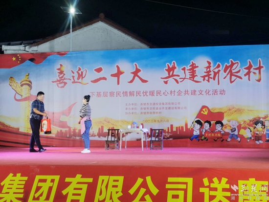 荊楚網(wǎng)(湖北日報網(wǎng))訊(通訊員李傳麗 楊婷 楊芳)中秋節(jié)即將來臨,為豐富廣大黨員干部群眾的精神文化生活,營造節(jié)日喜慶氛圍。9月8日晚,赤壁交投集團(tuán)在該市趙李橋鎮(zhèn)趙李橋村舉辦“喜迎二十大 共建新農(nóng)村”送廉文化下鄉(xiāng)主題晚會,以文化浸潤凝聚黨心民心,用文化展現(xiàn)從嚴(yán)治黨,弘揚(yáng)清風(fēng)正氣。