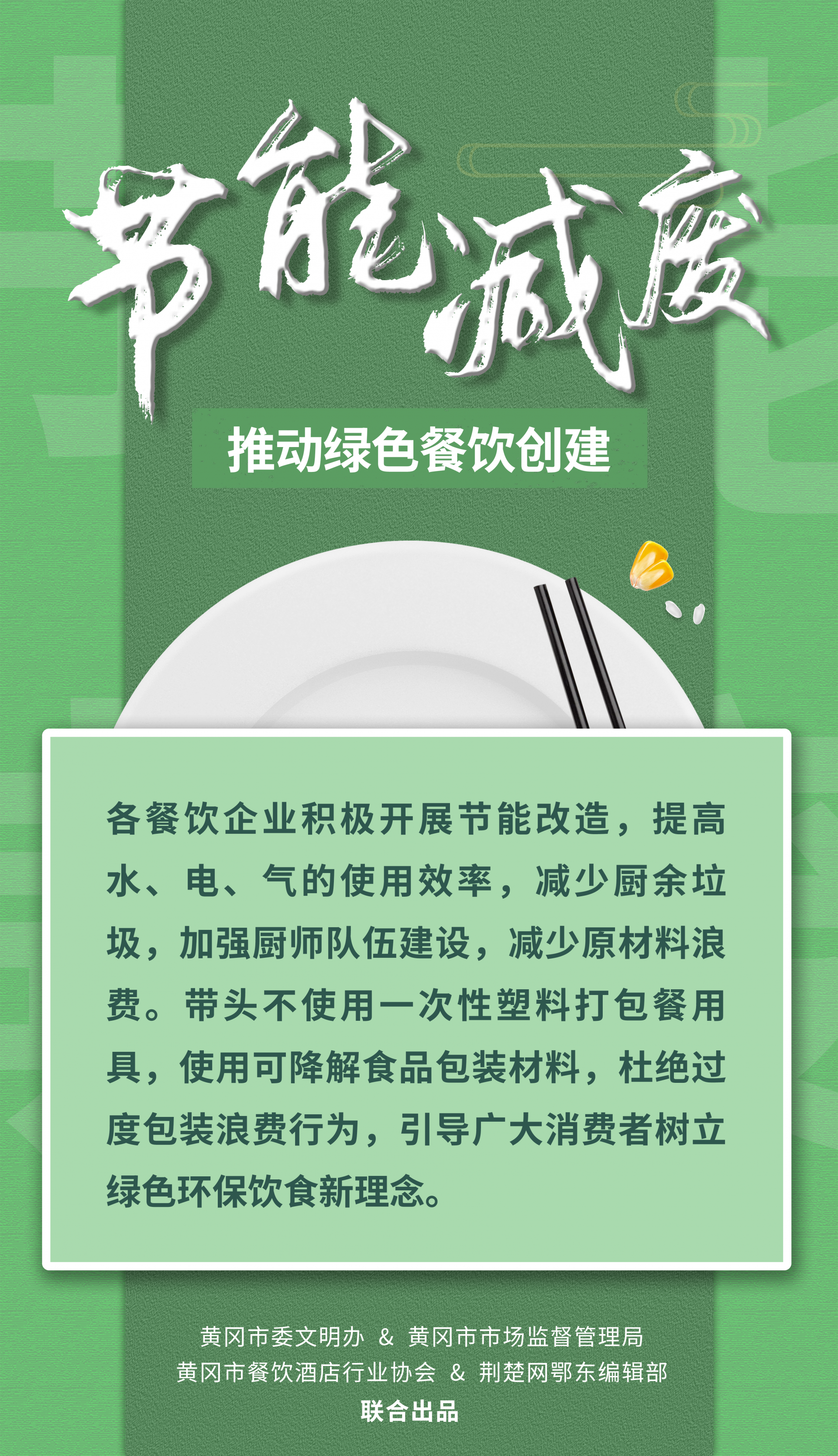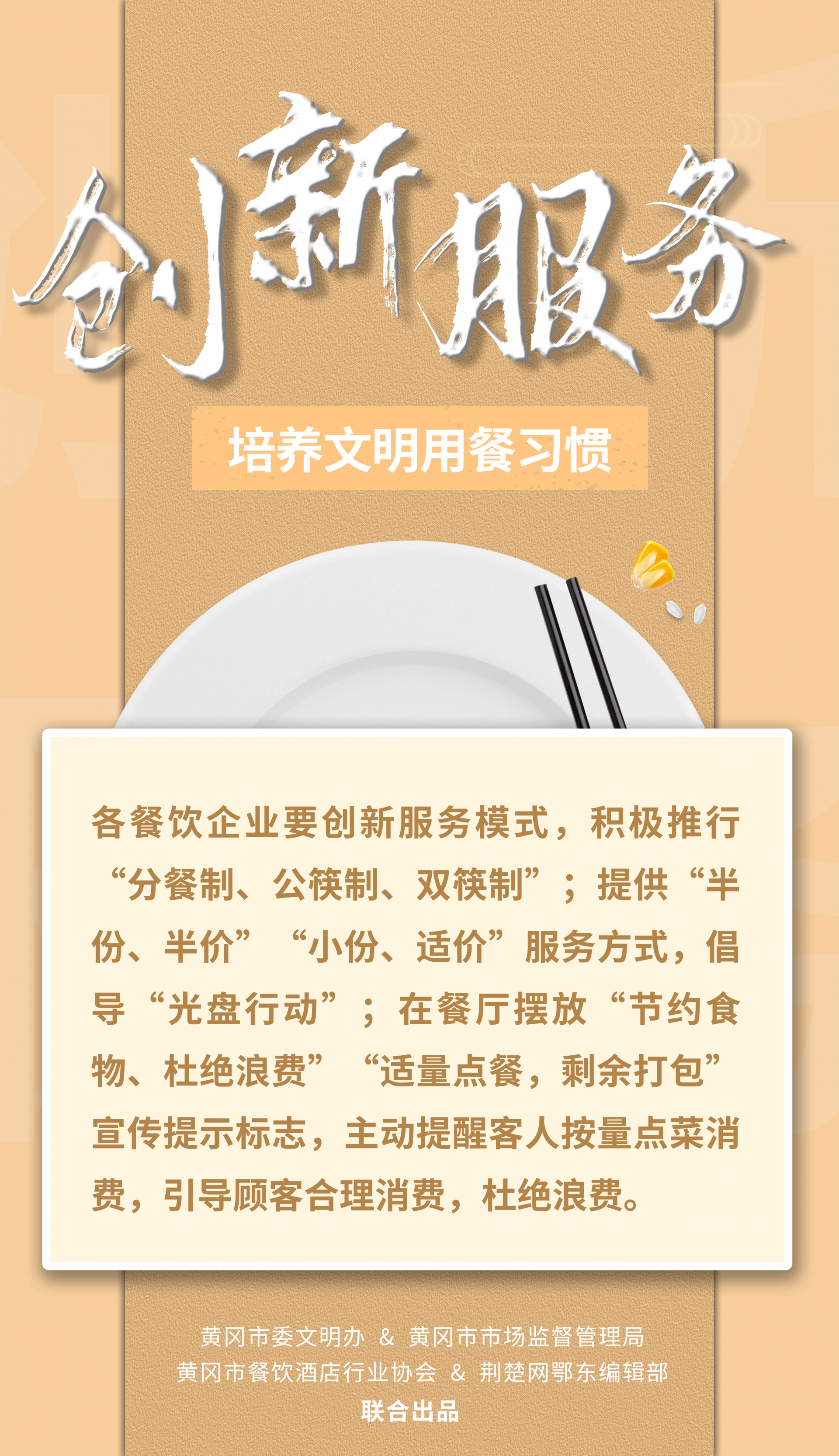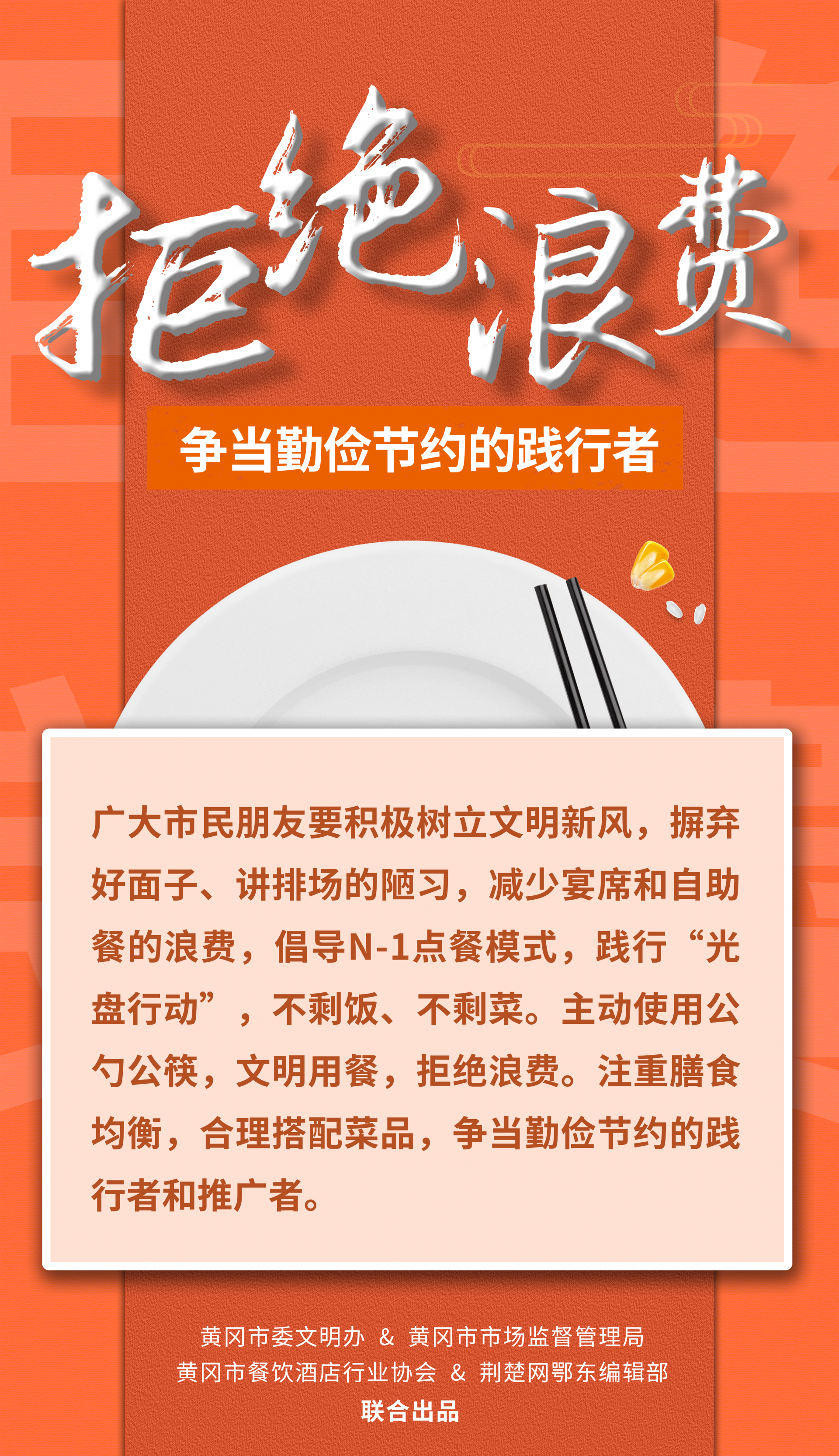 荊楚網(wǎng)(湖北日報網(wǎng))訊(記者陶輝 姜夢瑤 通訊員張開宇 姜文馨)一粥一飯,當(dāng)思來之不易。為引導(dǎo)餐飲行業(yè)健康綠色發(fā)展,踐行“文明用餐、反對浪費(fèi)”時代新風(fēng),堅決制止餐飲浪費(fèi)行為,9月14日,黃岡市委文明辦、黃岡市市場監(jiān)督管理局、黃岡市餐飲酒店行業(yè)協(xié)會聯(lián)合向全市餐飲行業(yè)、廣大市民朋友發(fā)出倡議。