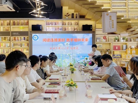 讀書會現(xiàn)場,麻城市第六小學黨委副書記、全國TCL希望工程燭光獎引領獎獲得者徐能英老師就《閱讀連接美好 攜手播種未來》這一課題作了經(jīng)驗交流,她針對學生的身心特點,并結(jié)合教學自身規(guī)律,創(chuàng)新閱讀教學方法,通過班級圖書角建設、經(jīng)典誦讀、作詩比賽、暑期游學等方式,引導學生形成正確的閱讀動機,激發(fā)讀書的樂趣,教給學生讀書的方法,培養(yǎng)良好的讀書習慣,提升學生的文化底蘊,營造濃厚的學習氛圍。